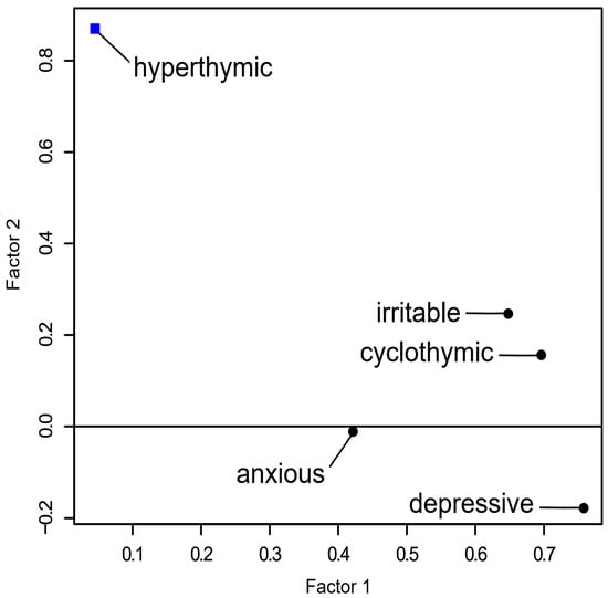 - Morvan, Y.; Tibaoui, F.; Bourdel, M.-C.; Lôo, H.; Akiskal, K.K.; Akiskal, H.S.; Krebs, M.-O. Confirmation of the factorial structure of temperamental autoquestionnaire TEMPS-A in non-clinical young adults and relation to current state of anxiety, depression and to schizotypal traits. J. Affect. Disord. 2011, 131, 37–44. [Google Scholar] [CrossRef]