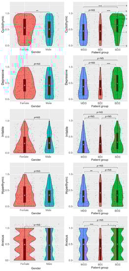 - Perugi, G.; Musetti, L.; Simonini, E.; Piagentini, F.; Cassano, G.; Akiskal, H. Gender-mediated clinical features of depressive illness the importance of temperamental differences. Br. J. Psychiatry 1990, 157, 835–841. [Google Scholar] [CrossRef] [PubMed]
