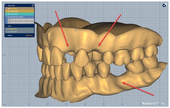 - Winkler, J.; Gkantidis, N. Trueness and precision of intraoral scanners in the maxillary dental arch: An In Vivo analysis. Sci. Rep. 2020, 10, 1172. [Google Scholar] [CrossRef] [PubMed]