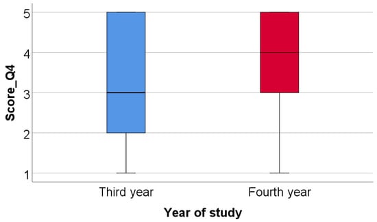 | Year of Study/Score_Q4 | Average ± SD | Median (IQR) | Mean Rank | p * |