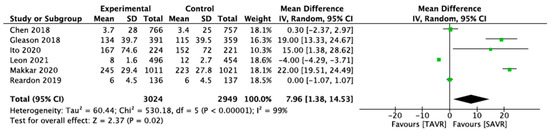 Amartya Kundu’s meta-analysis, which included 2953 patients from five studies, noted that TAVR was linked to a similar level of mid-term mortality as SAVR was. A lower likelihood of having acute renal injury, short-term severe hemorrhage and newly onset atrial fibrillation was linked to TAVR. However, TAVR was linked to an increased chance of needing to implant a permanent pacemaker. The risk of myocardial infarction, stroke, endocarditis or aortic valve reintervention was not significantly different between the two groups [37].