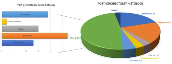 - Stephenson, A.; Eggener, S.E.; Bass, E.B.; Chelnick, D.M.; Daneshmand, S.; Feldman, D.; Gilligan, T.; Karam, J.A.; Leibovich, B.; Liauw, S.L.; et al. Diagnosis and Treatment of Early Stage Testicular Cancer: AUA Guideline. J. Urol. 2019, 202, 272–281. [Google Scholar] [CrossRef] [PubMed]