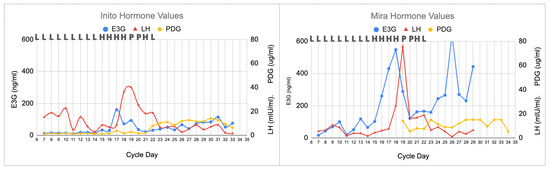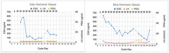 Specific patterns have been identified that predict abnormalities in the luteal phase. For example, low PDG around the time of ovulation predicts low PDG in the mid-luteal phase [17]. Other details related to a shortened luteal phase length, estrogen levels, LH, and follicle-stimulating hormone (FSH) were also found to be relevant with respect to luteal phase deficiency [18,19].