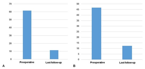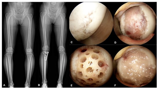 - Schuster, P.; Geßlein, M.; Schlumberger, M.; Mayer, P.; Mayr, R.; Oremek, D.; Frank, S.; Schulz-Jahrsdörfer, M.; Richter, J. Ten-Year Results of Medial Open-Wedge High Tibial Osteotomy and Chondral Resurfacing in Severe Medial Osteoarthritis and Varus Malalignment. Am. J. Sports Med. 2018, 46, 1362–1370. [Google Scholar] [CrossRef]