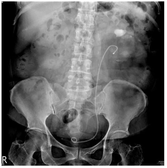 - Chang, C.K.; Wu, Y.H.; Shih, M.P.; Geng, J.H. Intracardiac Migration of the Ureteral Double-J Stent during Percutaneous Nephrolithotomy. Medicina 2021, 57, 939. [Google Scholar] [CrossRef]