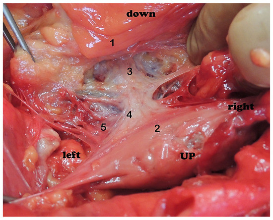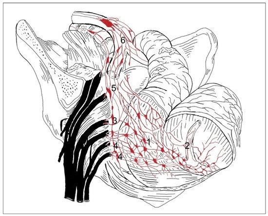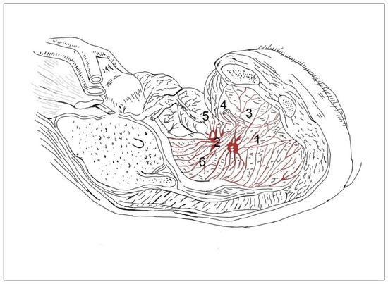- Pernkopf, E. Atlas of Topographical and Applied Human Anatomy, Vol. 2: Thorax, Abdomen and Extremities, 2nd revised ed.; W.B. Saunders Company: Philadelphia, PA, USA, 1989; pp. 1–308. [Google Scholar]