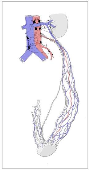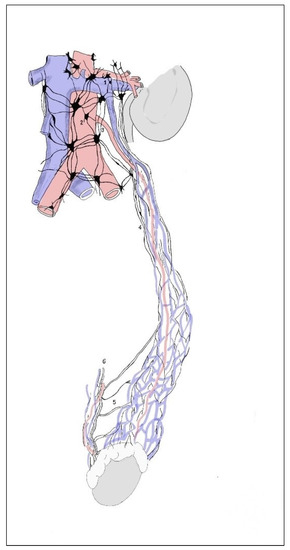 - Beveridge, T.S.; Johnson, M.; Power, A.; Power, N.E.; Allman, B.L. Anatomy of the nerves and ganglia of the aortic plexus in males. J. Anat. 2015, 226, 93–103. [Google Scholar] [CrossRef]