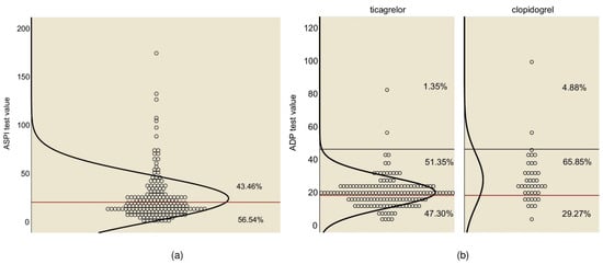 - Peerschke, E.I.; Castellone, D.D.; Stroobants, A.K.; Francis, J. Reference range determination for whole-blood platelet aggregation using the multiplate analyzer. Am. J. Clin. Pathol. 2014, 142, 647–656. [Google Scholar] [CrossRef] [PubMed]