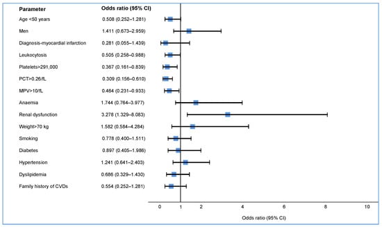 - Jakl, M.; Sevcik, R.; Ceral, J.; Fatorova, I.; Horacek, J.M.; Vojacek, J. Mean platelet volume and platelet count: Overlooked markers of high on-treatment platelet reactivity and worse outcome in patients with acute coronary syndrome. Anadolu Kardiyol. Derg. 2014, 14, 85–86. [Google Scholar] [CrossRef]