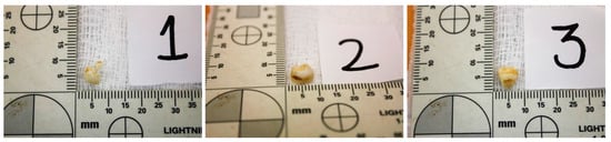 Four years later, a woman looking for her missing son went to the authorities. A saliva sample was obtained according to the usual protocol followed in these cases at our institution. DNA was extracted from the sample using a Chelex protocol []. DNA typing was performed as described above for the bone fragments, but only with the Identifiler kit. When the woman’s DNA profile was compared to the database, a positive match suggested a first-degree kinship with the person to whom the remains belonged. The woman was asked about the existence of other first-degree relatives of her son, which could allow a complete identification of the remains. She denied the availability of the father and other first-degree relatives of her son. Later in the interview, she recalled that she had kept three deciduous molars from her son in a plastic bag for more than thirty years (Figure 1). She was asked for the molars to see whether they could serve as a reference sample.