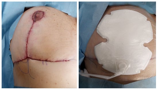 - Wareham, C.M.; Karamchandani, M.M.; Ku, G.D.L.C.; Gaffney, K.; Sekigami, Y.; Persing, S.M.; Homsy, C.; Nardello, S.D.; Chatterjee, A.M. Closed Incision Negative Pressure Therapy in Oncoplastic Breast Surgery: A Comparison of Outcomes. Plast. Reconstr. Surg.-Glob. Open 2023, 11, e4936. [Google Scholar] [CrossRef] [PubMed]