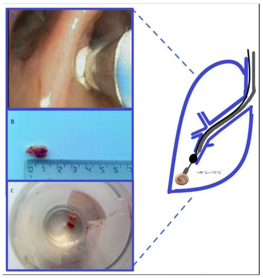- Rubio, E.R.; le, S.R.; Whatley, R.E.; Boyd, M.B. Cryobiopsy: Should this be used in place of endobronchial forceps biopsies? Biomed. Res. Int. 2013, 2013, 730574. [Google Scholar] [CrossRef]