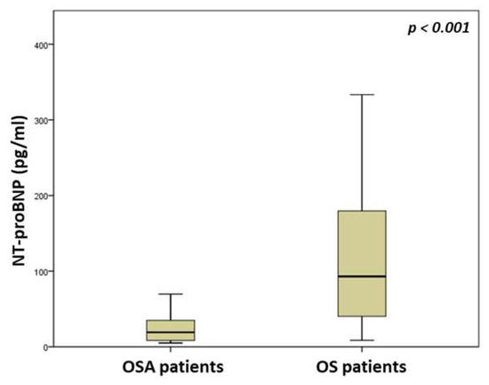 Figure 2. Comparison of N-terminal pro-B type natriuretic peptide serum levels between OSA and OS patients.