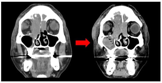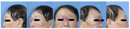 The etiological factors that contribute to NHL are diverse and include immunodeficiency, viral infections such as the Epstein–Barr virus and radiation exposure, hybrid genes resulting from translocation, and radioactive contamination. While several reports have documented cases where lymphoma was diagnosed 1 to 2 months after trauma, the etiological role of trauma in the onset of lymphoma is not well understood [,,]. Barnett et al. [] suggested that prolonged or recurrent inflammation resulting from trauma may induce cellular atypia, potentially leading to the development of neoplasia. Additionally, previous facial trauma may create a locus minoris resistentiae where circulating lymphoma cells can accumulate and become trapped, potentially leading to the formation of lymphoma nodules []. While the connection between the patient’s trauma and the tumor’s onset remains unclear, our case can serve as an example of facial lymphoma arising as a result of trauma.