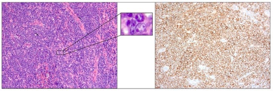 - Campo, E.; Harris, N.L.; Jaffe, E.S.; Pileri, S.A.; Stein, H.; Thiele, J.; Vardiman, J.W. WHO Classification of Tumors of Haematopoietic and Lymphoid Tissues; International Agency for Research on Cancer: Lyon, France, 2008; p. 242. [Google Scholar]