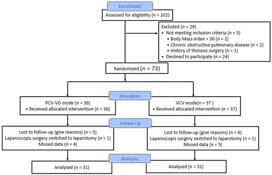 - Jaju, R.; Jaju, P.B.; Dubey, M.; Mohammad, S.; Bhargava, A.K. Comparison of volume controlled ventilation and pressure controlled ventilation in patients undergoing robot-assisted pelvic surgeries: An open-label trial. Indian J. Anaesth. 2017, 61, 17–23. [Google Scholar] [CrossRef]