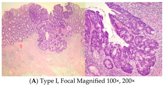 - Ryan, R.; Gibbons, D.; Hyland, J.M.P.; Treanor, D.; White, A.; Mulcahy, E.H.; O’Donoghue, D.P.; Moriarty, M.; Fennelly, D.; Sheahan, K. Pathological response following long-course neoadjuvant chemoradiotherapy for locally advanced rectal cancer. Histopathology 2005, 47, 141–146. [Google Scholar] [CrossRef]