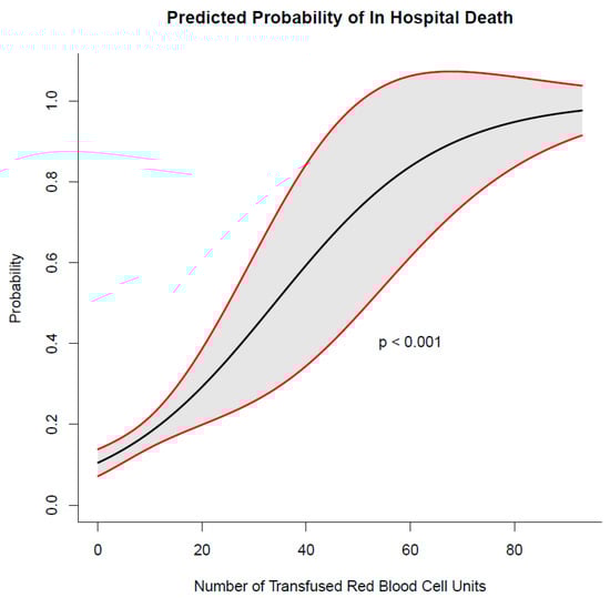 Increasing probability for in-hospital mortality with every transfused packed red blood cell product.
