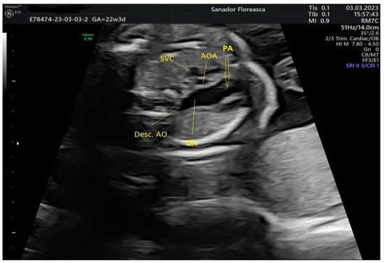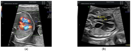 - Volpe, P.; Marasini, M.; Caruso, G.; Gentile, M. Prenatal diagnosis of interruption of the aortic arch and its association with deletion of chromosome 22q11. Ultrasound Obstet. Gynecol. 2002, 20, 327–331. [Google Scholar] [CrossRef]