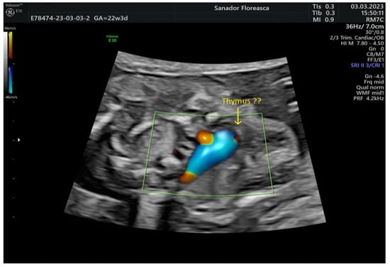 - Karl, K.; Heling, K.S.; Lopez, A.S.; Thiel, G.; Chaoui, R. Thymic-thoracic ratio in fetuses with trisomy 21, 18 or 13. Ultrasound Obstet. Gynecol. 2012, 40, 412–417. [Google Scholar] [CrossRef] [PubMed]