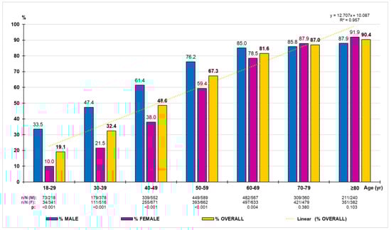 3.1. HTN Prevalence Rates According to 140/90 Criterion