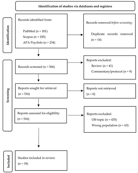 A total of 580 papers were identified, 14 papers were duplicates and were removed, while the remaining (N = 548) were excluded because they were not relevant. Therefore, N = 18 papers were evaluated in detail and included in the analysis (Figure 1).