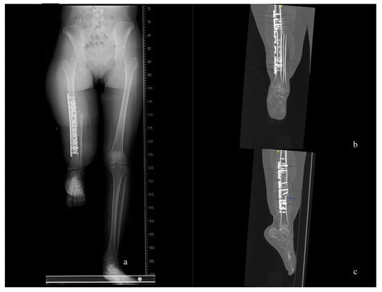 The following supporting information can be downloaded at https://www.mdpi.com/article/10.3390/medicina59101879/s1, Video S1: The video captures the patient during a one-year follow-up. The patient exhibits a comfortable gait cycle with a slight circumduction gait. Figure S1 and Figure S2: Right lower leg x-ray at the 6-month follow-up.
