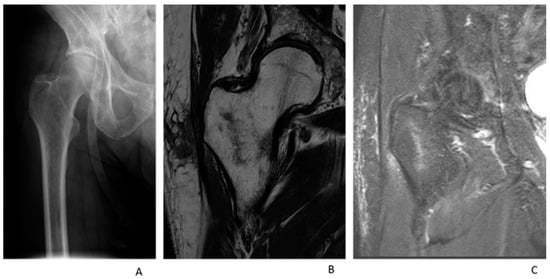 - Sankey, R.A.; Turner, J.; Lee, J.; Healy, J.; Gibbons, C.E. The use of MRI to detect occult fractures of the proximal femur: A study of 102 consecutive cases over a ten-year period. J. Bone Jt. Surg. Br. 2009, 91, 1064–1068. [Google Scholar] [CrossRef] [PubMed]