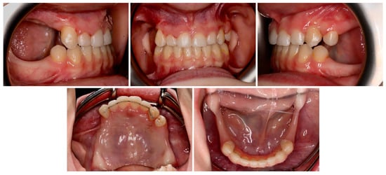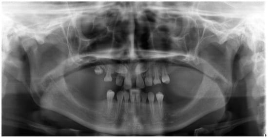 The prevalence of non-syndromic hypodontia ranges from 3% to 10%, whereas the more severe oligodontia shows a prevalence of 0.1–0.5%. Anodontia is found almost exclusively in syndromic cases []. Oligodontia can present not only as an isolated condition but can also present as a part of syndromes [,,]. A genetic factor is commonly described as a cause of isolated oligodontia. Mutations in the EDAR, EDA, PAX9, MSX, WNT10A, and LRP6 genes are associated with non-syndromic oligodontia [,,]. Moreover, environmental factors and host factors such as radiotherapy, chemotherapy, disease/infection, viral infection during pregnancy, and metabolic imbalances could lead to germ-formation disturbances [].