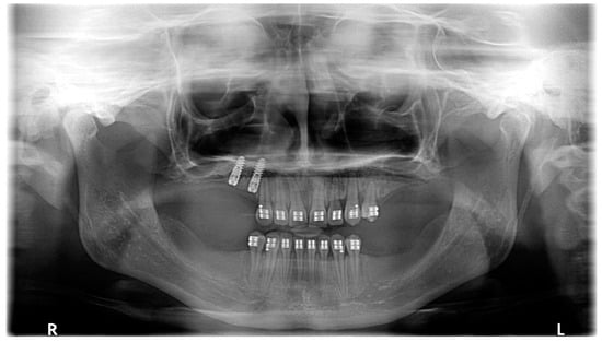 The current follow-up period is one year. Bone grafts are planned both in the mandible and in the left quadrant of the maxilla. Next, dental implants will be placed. Following the osseointegration of the implants, fixed prosthetic restorations will be performed to obtain stable occlusion and proper function. These procedures have not yet been performed due to the patient’s financial constraints and the lack of reimbursement from the public payer. Completion of prosthetic rehabilitation will be carried out in the future after the patient has collected funds.