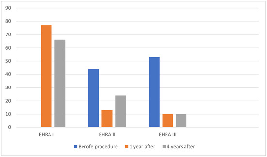 Figure 2. EHRA score before cryoablation, 1 year, and 4 years after procedure.
