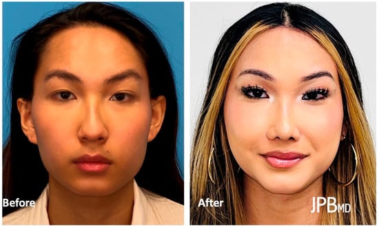 - Fisher, M.; Lu, S.M.; Chen, K.; Zhang, B.; Di Maggio, M.; Bradley, J.P. Facial Feminization Surgery Changes Perception of Patient Gender. Aesthet. Surg. J. 2020, 40, 703–709. [Google Scholar] [CrossRef]