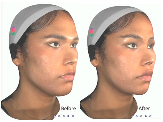 Aligning patient expectations with realistic surgical outcomes is a mainstay in plastic surgery. Throughout history, surgeons have worked towards this goal with the use of simplistic illustrations that attempt to display the expected surgical outcome. Artificial intelligence (AI) has the potential to revolutionize the process of morphing patient images. Many companies have developed handheld camera systems that possess advanced technical capabilities with straightforward user interfaces [23]. This technology can be applied to the preoperative FFS visit to generate three-dimensional (3D) morphs of the patient’s face. These morphs can then be adjusted in real-time to show patients the potential outcomes of FFS operations on their own faces. The software company DeepSurface AI (version 2.0.0) has developed AI specifically for preoperative morphing for FFS patients. This software can be used to grossly augment each facial region involved in FFS by dragging an icon across the feminine–masculine spectrum. More fine-tuned adjustments can also be performed (for example, an isolated reduction of the dorsal bump while leaving the rest of the nose untouched) [24] (Figure 3).
