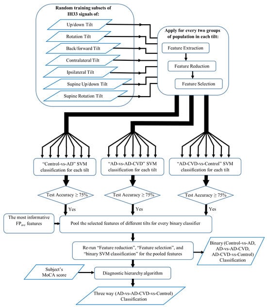 - Lithgow, B.J.; Dastgheib, Z.; Anssari, N.; Mansouri, B.; Blakley, B.; Ashiri, M.; Moussavi, Z. Physiological Separation of Alzheimer’s Disease and Alzheimer’s Disease with Significant Levels of Cerebrovascular Symptomology and Healthy Controls. Med. Biol. Eng. Comput. 2021, 59, 1597–1610. [Google Scholar] [CrossRef]