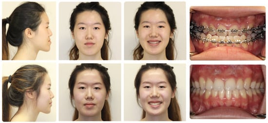 - Liou, Y.J.; Chen, P.R.; Tsai, T.Y.; Lin, S.; Chou, P.Y.; Lo, C.M.; Chen, Y.R. Comparative assessment of orthodontic and aesthetic outcomes after orthognathic surgery with clear aligner or fixed appliance therapy. Plast. Reconstr. Surg. 2023. [CrossRef]