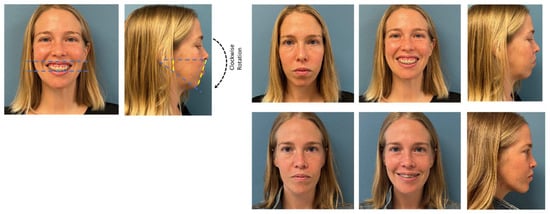 - Wannalerkngam, C.; Sinha, S.P.; Tran-Duy, T.D.; Wen-Ching Ko, E.; Chen, Y.R.; Huang, C.S. Does Clockwise Rotation of Maxillomandibular Complex Using Surgery-First Approach to Correct Mandibular Prognathism Improve Facial Appearance? J. Oral Maxillofac. Surg. 2023, 81, 32–41. [Google Scholar] [CrossRef] [PubMed]