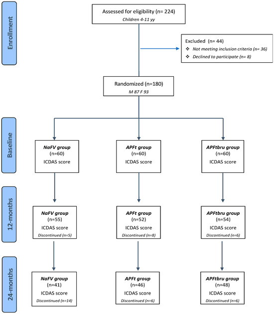 Sorazabal, A.L.; Salgado, P.; Ferrarini, S.; Lazzati, R.; Squassi, A.F.; Campus, G.; Klemonskis, G. An Alternative Technique for Topical Application of Acidulated Phosphate Fluoride (APF) Gel: A Two-Years Double-Blind Randomization Clinical Trial (RCT). Medicina 2023, 59, 2118. https://doi.org/10.3390/medicina59122118