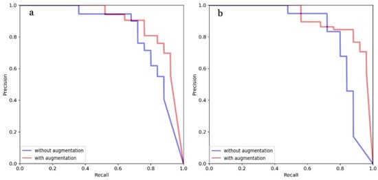 Table 3. The results demonstrate a substantial enhancement across all evaluation metrics for both tasks due to the use of augmentation methods. The precision–recall (PR) curves for the detection and segmentation of lesions are shown in
