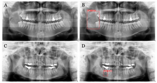 In this study, the resolution of the input panoramic images was 2776 × 1480 pixels. To the best of our knowledge, our study has the largest resolution of panoramic radiographs to date, among published deep learning studies on the automatic detection of radiolucent lesions [
