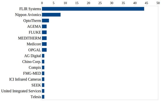 Overview of manufacturers and frequency of use of the respective thermographic devices they produced.