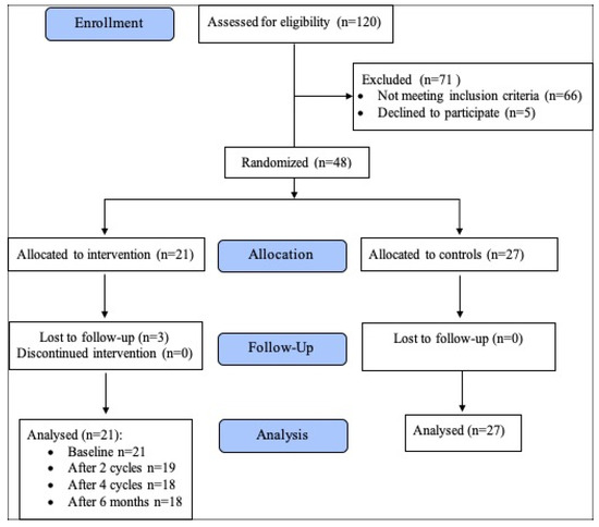 Cardiovascular toxicity risk assessment was accomplished for every patient, and modification of the risk factors was suggested, including the recommendation for moderate physical activity during cancer treatment.