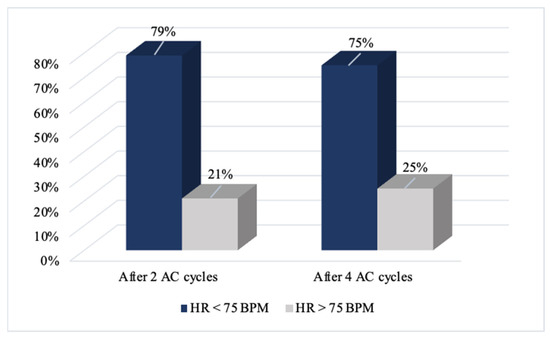 Heart rate achievement during the study in ivabradine group patients. AC—anthracyclines; BPM—beats per minute; HR—heart rate.