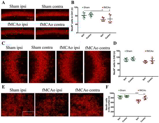 Sham ipsilateral (Ipsi) vs. fMCAo ipsilateral;