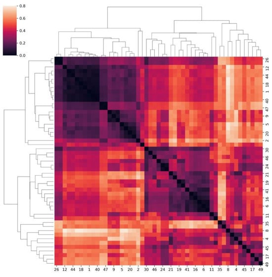 Heatmap and dendrogram from the hierarchical cluster analysis displaying the individual Gower’s distances.