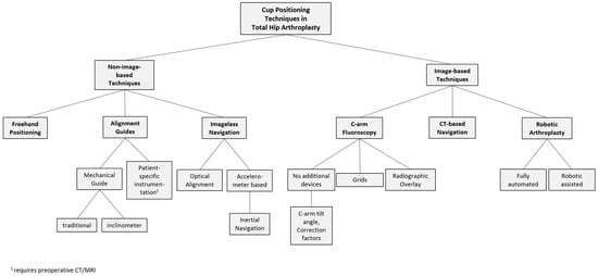 - Meermans, G.; Grammatopoulos, G.; Innmann, M.; Beverland, D. Cup placement in primary total hip arthroplasty: How to get it right without navigation or robotics. EFORT Open Rev. 2022, 7, 365–374. [Google Scholar] [CrossRef] [PubMed]