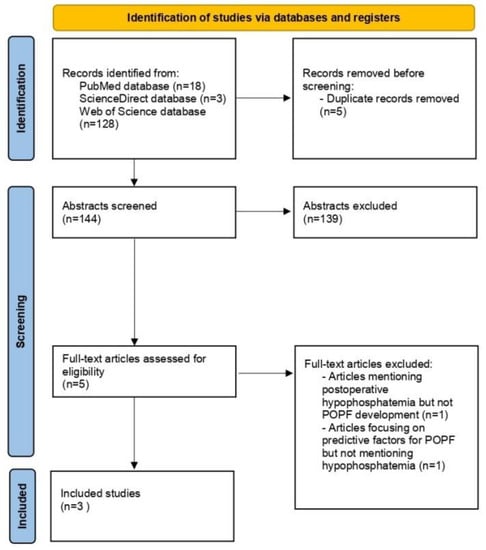 Chicago/Turabian StyleGrikyte, Ieva, and Povilas Ignatavicius. 2023. "Postoperative Hypophosphatemia as a Prognostic Factor for Postoperative Pancreatic Fistula: A Systematic Review" Medicina 59, no. 2: 274. https://doi.org/10.3390/medicina59020274