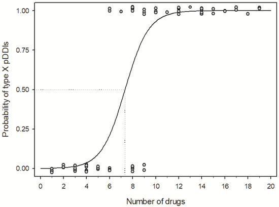 Logistic regression analysis based on exposure to potential drug—drug interactions (n = 76).