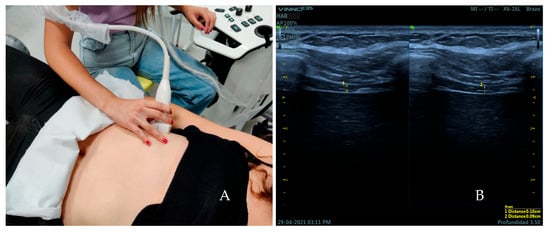 For the analysis of these muscular and connective structures, the techniques traditionally employed are based on imaging tests, including radiography, ultrasonography, fluoroscopy, magnetic resonance imaging, and electromyographic tests []. Ultrasonography has advantages including its noninvasive technique, nonionizing radiation [], reproducibility, well tolerated by the patient, and has good inter- and intra- observer reliability [,]. Specifically, rehabilitative ultrasound imaging (RUSI) is considered a method of choice for the evaluation of musculoskeletal structures by physiotherapists [,].