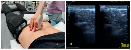 - Fernández-Carnero, S.; Martin-Saborido, C.; Achalandabaso Ochoa-Ruiz de Mendoza, A.; Ferragut-Garcias, A.; Cuenca-Zaldivar, J.N.; Leal-Quiñones, A.; Calvo-Lobo, C.; Gallego-Izquierdo, T. The role of rehabilitative ultrasound imaging technique in the lumbopelvic region as a diagnosis and treatment tool in physiotherapy: Systematic review, meta-analysis and meta-regression. J. Clin. Med. 2021, 10, 5699. [Google Scholar] [CrossRef]