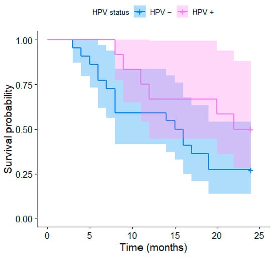 Kaplan–Meier curves of the 2-year survival depending on the HPV status.